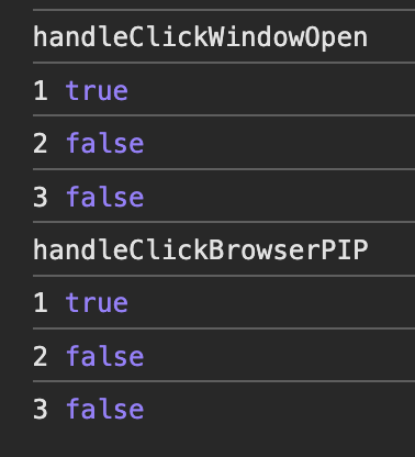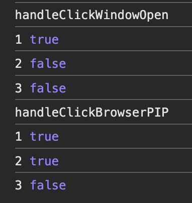 console.log('handleClickBrowserPIP', navigator.userActivation.isActive);